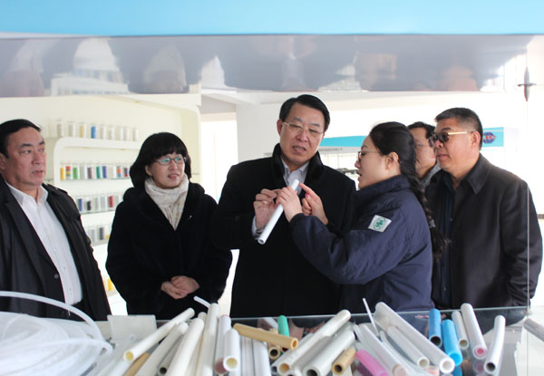 2016年2月17日,高區(qū)黨工委書記、管委會(huì)主任劉偉來聯(lián)橋新材走訪調(diào)研。高區(qū)領(lǐng)導(dǎo)王剛、傅華濤和區(qū)工委辦公室、經(jīng)發(fā)局、商務(wù)局、建設(shè)局等部門負(fù)責(zé)人陪同參加。