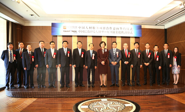 2016年5月18日上午,聯(lián)橋集團(tuán)與株式會(huì)社TRUST TECH“中國(guó)人材服務(wù)項(xiàng)目合作意向簽約儀式”在東京舉行,聯(lián)橋集團(tuán)董事長(zhǎng)慕镕鍵與株式會(huì)社TRUST TECH社長(zhǎng)西田穣代表雙方簽署了合作協(xié)議,威海市委副書記、市長(zhǎng)張惠,高區(qū)黨工委書記、管委會(huì)主任劉偉,威海市商務(wù)局局長(zhǎng)鄧勇,聯(lián)橋集團(tuán)董事、副總經(jīng)理于福杰等領(lǐng)導(dǎo)出席儀式。