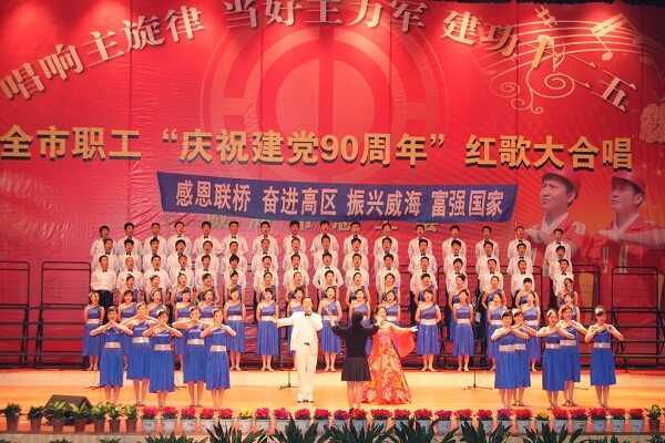 6月22日下午,威海市職工“慶祝建黨90周年”紅歌大合唱在國(guó)際會(huì)議中心激情上演。來(lái)自全市各行各業(yè)的職工代表歡聚一堂,用歌聲表達(dá)對(duì)黨和國(guó)家的深情和熱愛(ài),向中國(guó)共產(chǎn)黨成立90周年獻(xiàn)禮。威海市委書(shū)記王培廷、孫述濤、劉玉黨、邊祥慧、張劍、畢禮偉、李鳳俊等領(lǐng)導(dǎo)觀(guān)看了演出。