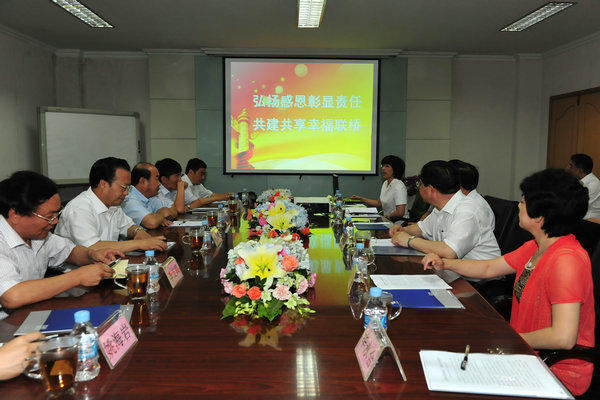 聯(lián)橋集團(tuán)黨委副書記、工會(huì)主席宋威麗向趙熙殿副書記一行介紹了集團(tuán)公司和工會(huì)工作的基本情況,著重匯報(bào)了聯(lián)橋集團(tuán)在“弘揚(yáng)感恩彰顯責(zé)任,共建共享幸福聯(lián)橋”工作中的舉措和體會(huì)。