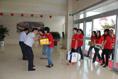 2012年9月27日下午,聯(lián)橋集團(tuán)愛心媽媽志愿者團(tuán)隊在集團(tuán)黨委副書記宋威麗的帶領(lǐng)下,前往威海兒童福利院,給孩子們送去150箱愛心水果和一些生活用品,送去了節(jié)日的問候和深切的關(guān)愛。威海市兒童福利院江海剛院長熱情接待了志愿者們。