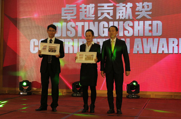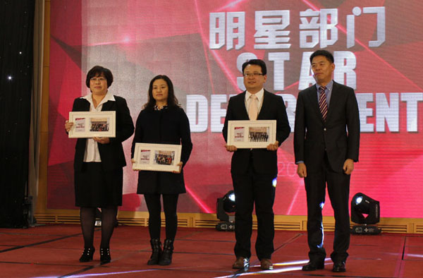 年會(huì)最莊嚴(yán)隆重的頒獎(jiǎng)環(huán)節(jié),在激昂奮進(jìn)的頒獎(jiǎng)盛典預(yù)告片中拉開(kāi)序幕。伴隨著氣勢(shì)磅礴、雄壯渾厚的音樂(lè),鏗鏘有力、抑揚(yáng)頓挫的頒獎(jiǎng)詞,獲得“卓越貢獻(xiàn)獎(jiǎng)”的進(jìn)口部、紡織二部,“明星部門”的紡織六部、紡織十九部、日本業(yè)務(wù)二部,“先進(jìn)部門”的紡織三部、日本業(yè)務(wù)三部、紡織九部、紡織十一、連心橋、紡織八部,“市場(chǎng)開(kāi)拓獎(jiǎng)”的美國(guó)市場(chǎng)部,“工業(yè)發(fā)展獎(jiǎng)”的新材料科技公司,各獲獎(jiǎng)單位代表和“項(xiàng)目引進(jìn)貢獻(xiàn)獎(jiǎng)”的李哲濱同志,站在了聯(lián)橋最高的領(lǐng)獎(jiǎng)臺(tái)上,接受領(lǐng)導(dǎo)和同事們的祝福與喝彩,尊享屬于他們的榮耀和驕傲。孫曙光等63名先進(jìn)個(gè)人也依次上臺(tái)領(lǐng)獎(jiǎng)。這是對(duì)每個(gè)獲獎(jiǎng)單位和個(gè)人一年來(lái)不懈努力的成績(jī)肯定,是精彩的綻放,是榮耀的象征,更是責(zé)任的擔(dān)當(dāng),希望的承載。