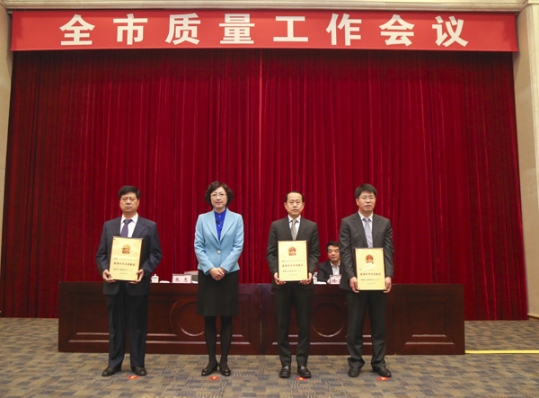 2016年3月30日,全市質(zhì)量工作會議在東山賓館召開。會上,對榮獲2015年度威海市市長質(zhì)量獎的3家企業(yè)及2名個人進行了表彰。聯(lián)橋集團榜上有名,喜獲威海市質(zhì)量領域最高獎,集團公司董事長慕镕鍵參加了頒獎儀式,接受了張惠市長親自頒發(fā)的榮譽獎牌。