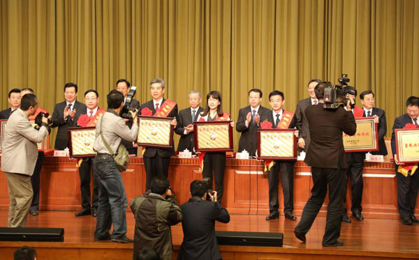4月28日,山東省委書記劉家義、省長龔正等領(lǐng)導(dǎo)為山東省獲獎單位授獎。聯(lián)橋集團(tuán)黨委副書記宋威麗代表公司接受了省長龔正親自頒發(fā)的榮譽(yù)獎牌。