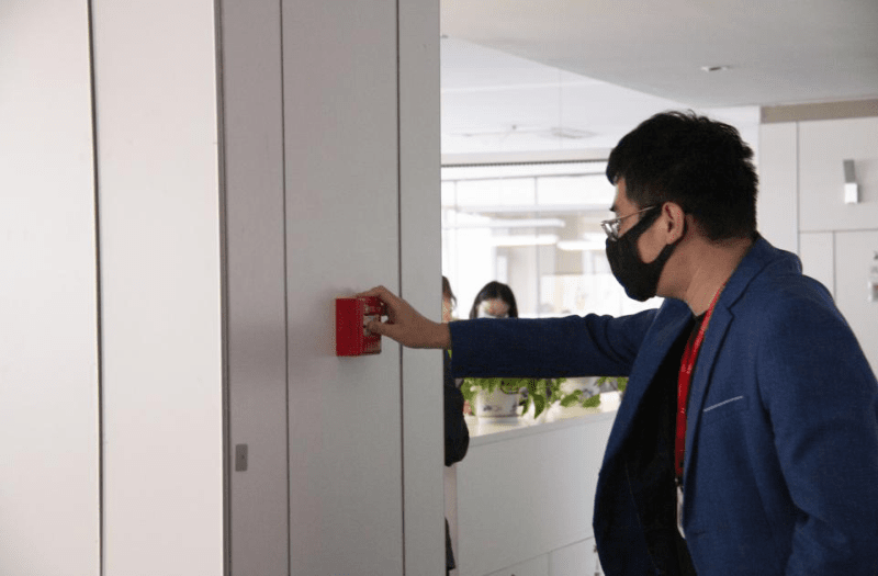 當天15時,聯(lián)橋集團安全部長、消防疏散演練總指揮宋杰一聲令下,演練正式拉開帷幕。首先,18樓會議室發(fā)現(xiàn)“火險”并發(fā)出火警報警信號,樓層負責人第一時間上報“火情”,按照應(yīng)急預案采取措施;隨后,各演練工作組接到通知后都迅速反應(yīng)到位,以本樓層員工消防志愿者為第一梯隊,取用本樓層現(xiàn)有滅火器展開滅火救援,集團滅火救援組也馬上到位支援,利用滅火器和室內(nèi)消防栓對“火場”滅控,最終成功控制撲滅“火情”。