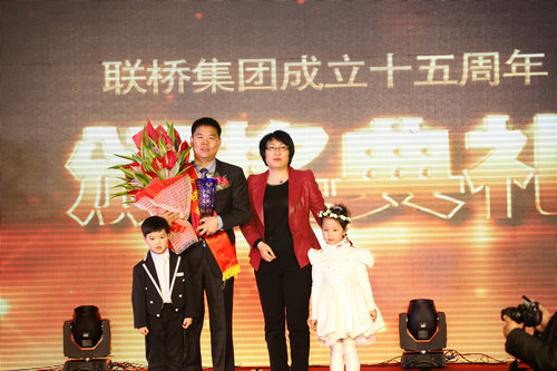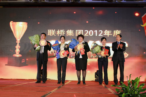 首先舉行的是聯(lián)橋集團成立十五周年頒獎典禮,通過LED大屏幕,播放獲獎人員VCR及頒獎詞,頒獎領導簇擁可愛的小花童上臺,把精美的獎杯、鮮花和紅包,授予為聯(lián)橋集團建設和發(fā)展做出卓越貢獻的2名聯(lián)橋棟梁、8名建業(yè)功勛和9名敬業(yè)典范。在2012年度表彰儀式上,對14個先進部門和企業(yè)、58名先進個人進行了表彰。