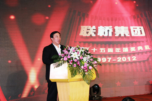 風雨同舟十五載,攜手并進鑄輝煌。2013年1月28日下午,伴隨著宏偉壯麗、激情昂揚的盛大開場片頭,聯(lián)橋集團成立十五周年頒獎典禮正式拉開了序幕。全體聯(lián)橋人共同歡聚在海悅建國飯店,熱烈慶祝聯(lián)橋集團成立十五周年。威海高技術產業(yè)開發(fā)區(qū)管委會副主任王剛、威海市商務局副局長劉秀景出席大會并致辭。