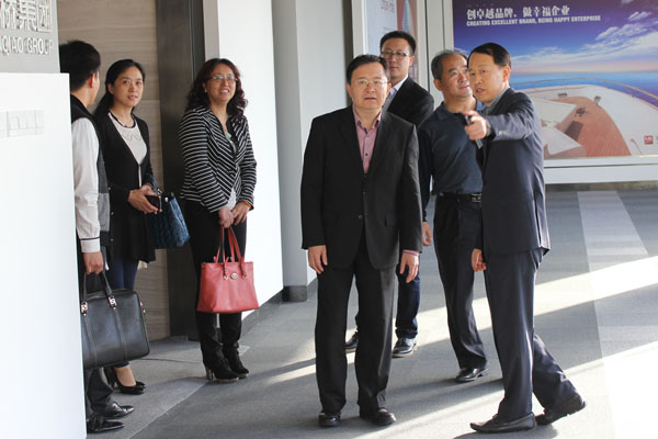 2015年5月13日,山東大學(xué)(威海)黨委書記仝興華、副書記趙玉璞一行六人來(lái)聯(lián)橋集團(tuán)參觀考察。集團(tuán)公司黨委書記、董事長(zhǎng)慕镕鍵及相關(guān)領(lǐng)導(dǎo)和工作人員陪同。