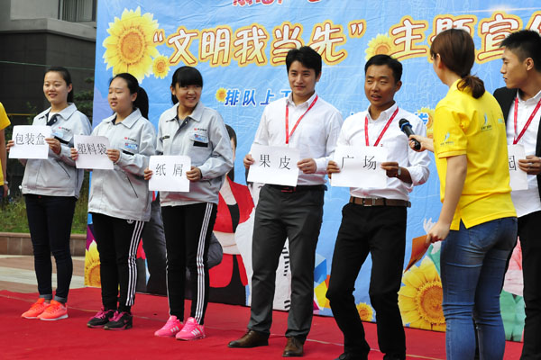 活動現(xiàn)場集團(tuán)歌伴舞節(jié)目《春暖花開》載歌載舞,優(yōu)美的舞姿,動人的歌聲詮釋了美的理念,愛的魅力。主播團(tuán)小合唱《文明家園》,聲情并茂,將文明的情感與和諧的君子風(fēng)氣融入到歌曲的主旋律里,讓人深感共鳴。聯(lián)橋集團(tuán)員工代表與主播團(tuán)成員一起進(jìn)行文明宣講,講述身邊的文明知識和文明小事,讓每個人意識到文明就在我們身邊,只要有心就可以傳遞文明的理念、進(jìn)行文明的行動。簡單有趣的“文明蘿卜蹲”互動游戲,讓大家對排隊上下車、禮讓斑馬線、不亂扔雜物等文明行為有了更為深刻的理解和認(rèn)同。